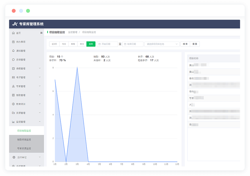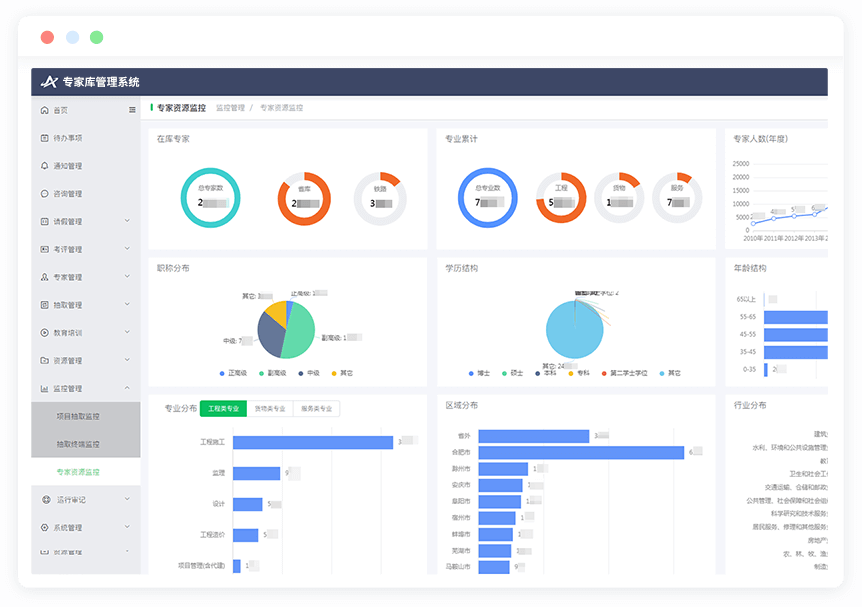 通過智能算法,實現(xiàn)抽取的隨機性和均衡性;實時反饋抽取求專業(yè)稀缺,支撐專家資源調(diào)度與協(xié)調(diào)征集;全過程數(shù)字化,智能分析決策。